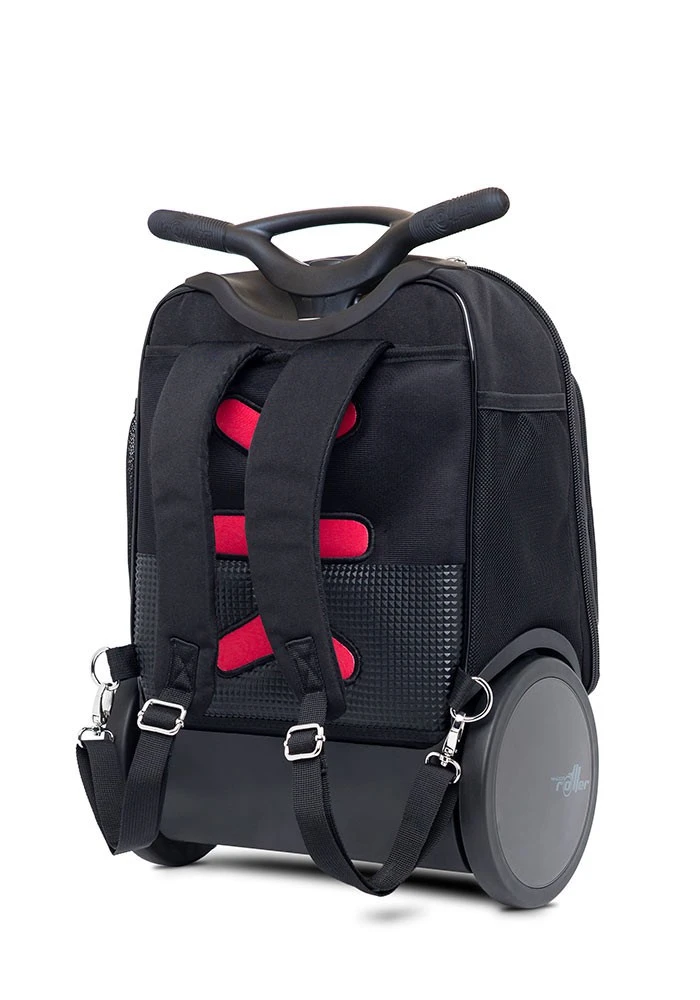 Mochila escolar de la marca Nikidom, modelo UP XL Supergirl. Es un troller muy resistente para ir al colegio y está recomiendado por el colegio profesional de fisioterapeutas para prevenir lesiones de espalda. El trolley tiene una estructura rígida para proteger el interior. El manillar tiene un diseño para poder llevarlo tanto para delante, como hacia detrás y evitar dolores de muñeca. Dispone de un compartimento principal para llevar los libros, además de dos bolsillos de rejilla. En la parte delantera lleva otro compartimento con bolsillos para organizar los bolígrafos y agenda. En la parte inferior lleva una estructura de plástico rígido para proteger la tela de los roces, que podrás adornar con los pines que se venden aparte. El tamaño XL tiene una capacidad de 27 litros, un 40% más que el tamaño normal. Sus ruedas extra grandes de 17,5 cm son silenciosas y permiten subir y bajar escalones muy facilmente. También podrás tunear las ruedas con divertidos adhesivos. Las medidas exteriores totales de la mochila son 53 x 38 x 23 cm.